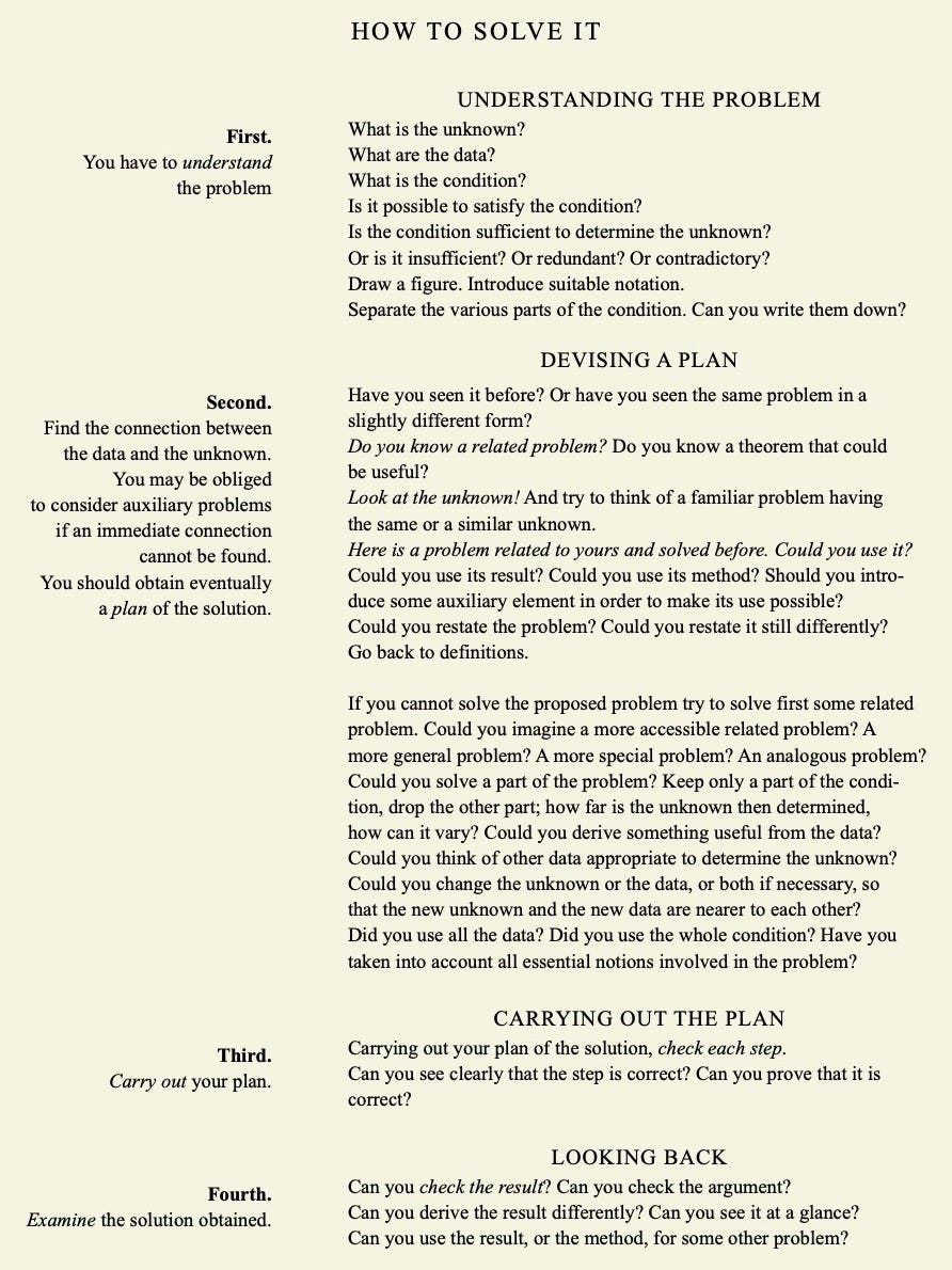We define the problem first because it makes the correct solution clear to humans and AI. Here’s a framework made by a Stanford professor for solving technical problems.